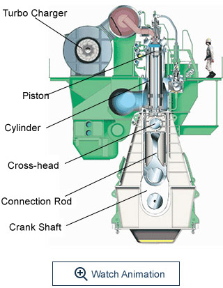 Marine engines on ships are responsible for propulsion of the vessel from one port to another.